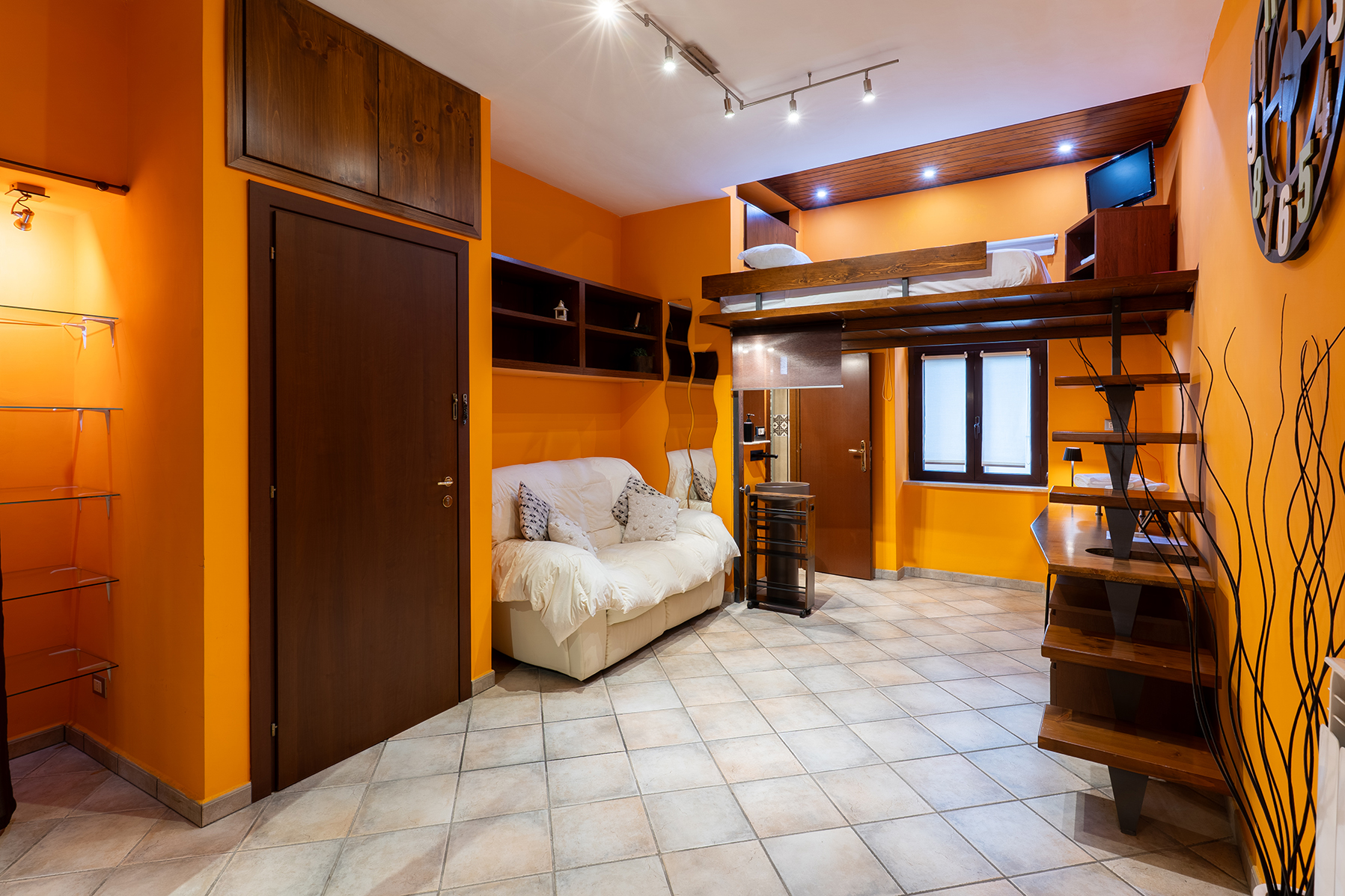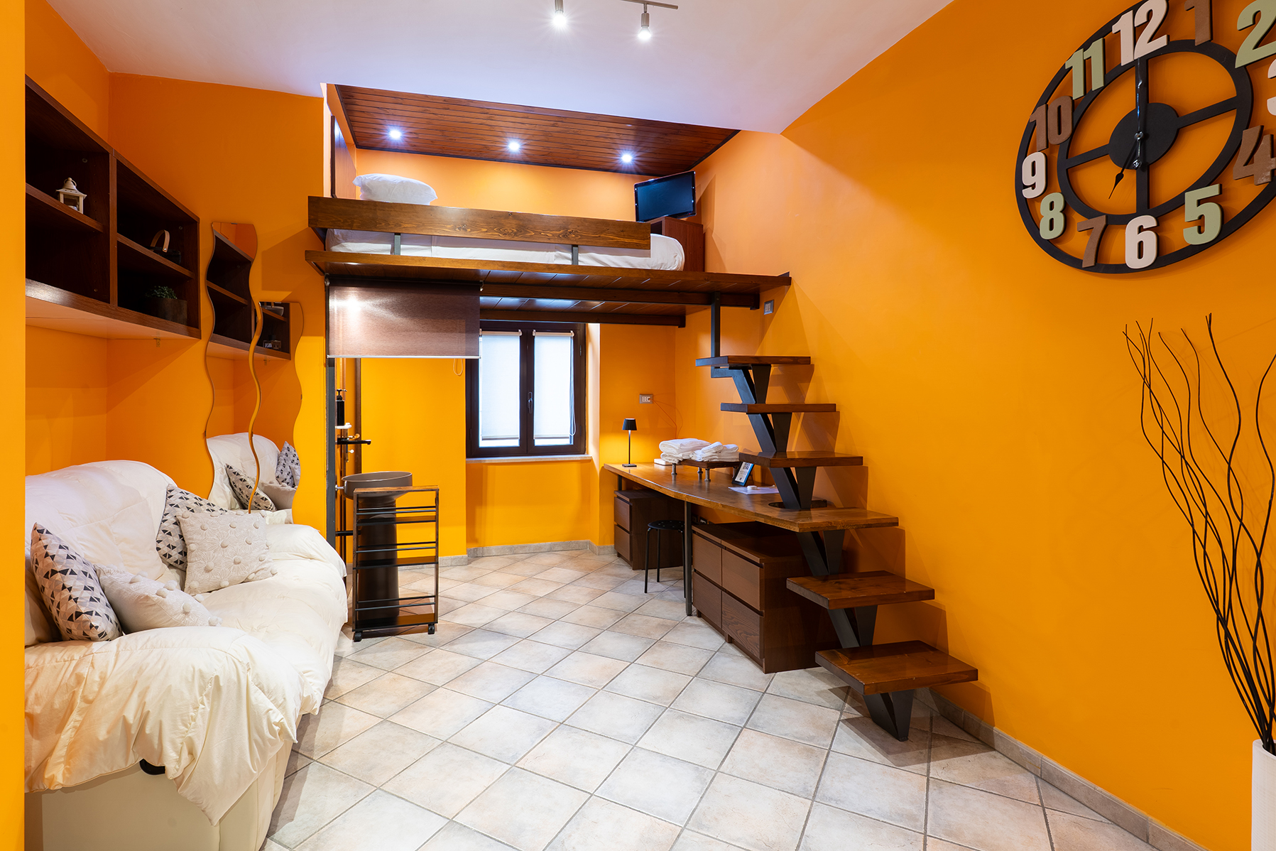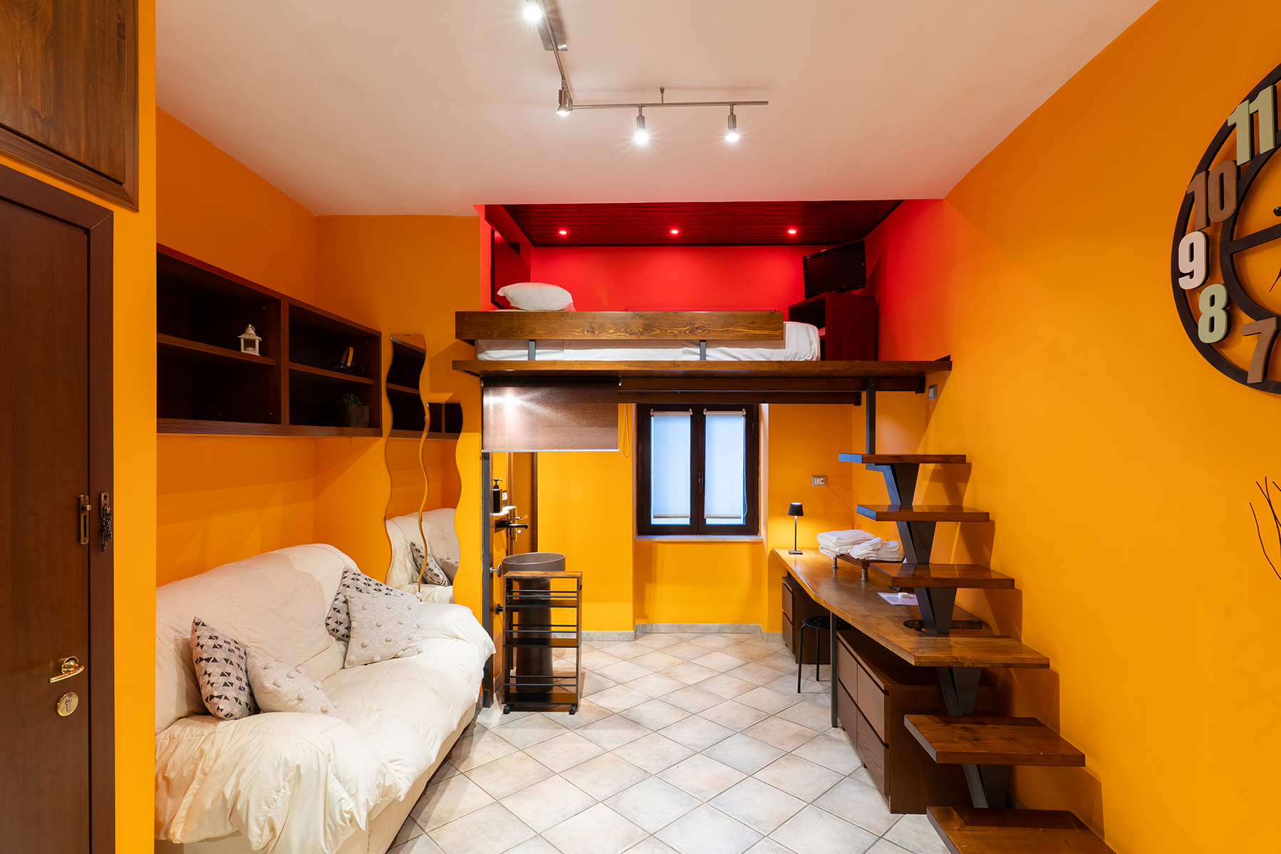 L’appartamento Hakuna Matata, dal design afro-moderno, unisce materiali naturali e tecnologia smart. Il letto a soppalco, le strutture in legno, la cromoterapia e la doccia sensoriale rendono questo spazio un rifugio contemporaneo dove ritrovare equilibrio e benessere.