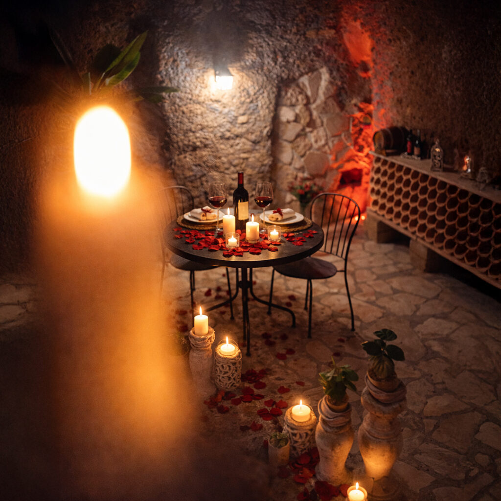 L’appartamento Le Segrete del Sangallo accoglie gli ospiti in un ambiente unico, caratterizzato da soffitti in legno, archi e pareti in tufo, arricchito da luci emozionali che creano atmosfere calde e rilassanti. Scendendo al piano interrato, una suggestiva cantina scolpita nel tufo invita a vivere un’esperienza sensoriale tra storia e gusto, ideale per momenti di degustazione e relax.